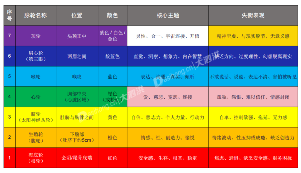 “七大脉轮”(Seven Chakras)是源自古印度瑜伽与密宗哲学的一套关于人体能量系统的理论。它认为人体内存在七个主要的能量中心(即“脉轮